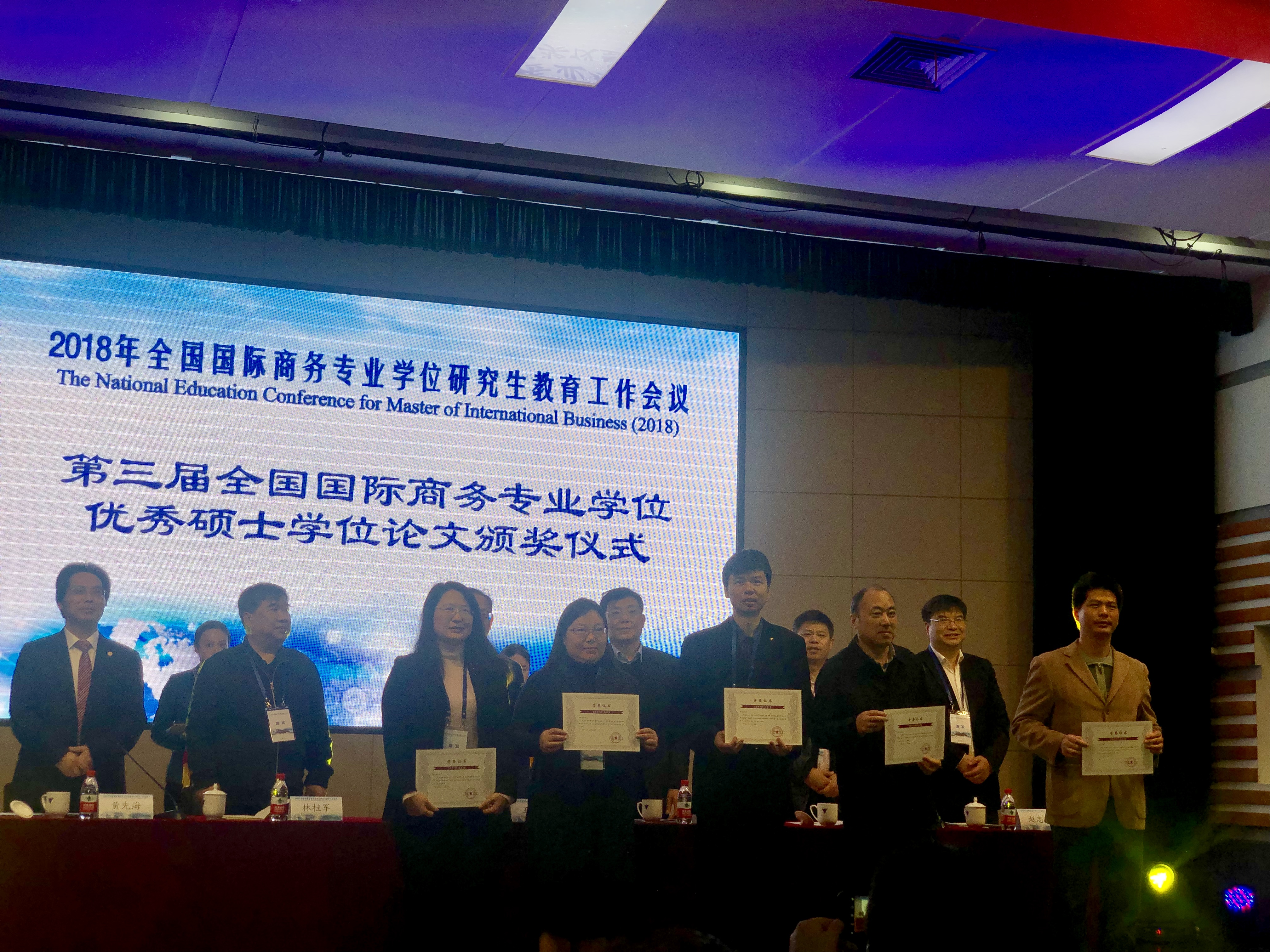 MIB项目谷克鉴教授指导的2015级平祎的学位论文《国际原油价格的影响因素分析——中国、美元还是期货投资?》和易靖韬教授指导的2015级何井丹同学的学位论文《基于制度压力视角的跨国公司战略选择问题研究——以谷歌和微软为例》喜获“第三届全国国际商务专业学位硕士优秀学位论文”三等奖。颁奖仪式于2018年11月16-17日浙江大学举办的“全国国际商务专业学位研究生教育工作会议(2018)”上举行。