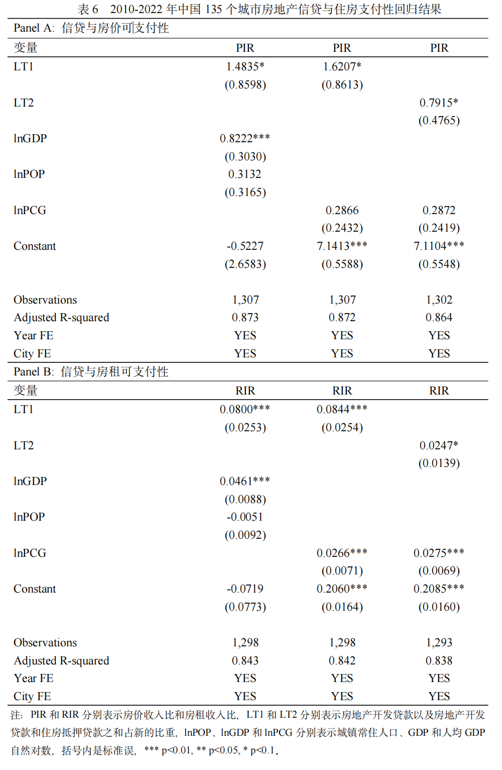 住房信贷规模增长易引发住房支付困难,尤其是房价支付困难。该研究使用2010-2022年中国135个城市房地产贷款数据,发现房地产贷款扩张会提高房租收入比与房价收入比,恶化房租可支付性,房地产贷款(包括房地产开发贷款与个人住房贷款)占比每增加1%,房价收入比和房租收入比分别增加0.79%和0.02%,房地产信贷对房价收入比的影响大于房租收入比的影响。因此,该研究建议在住房支付困难特别是房价支付困难地区实施收紧的住房政策。