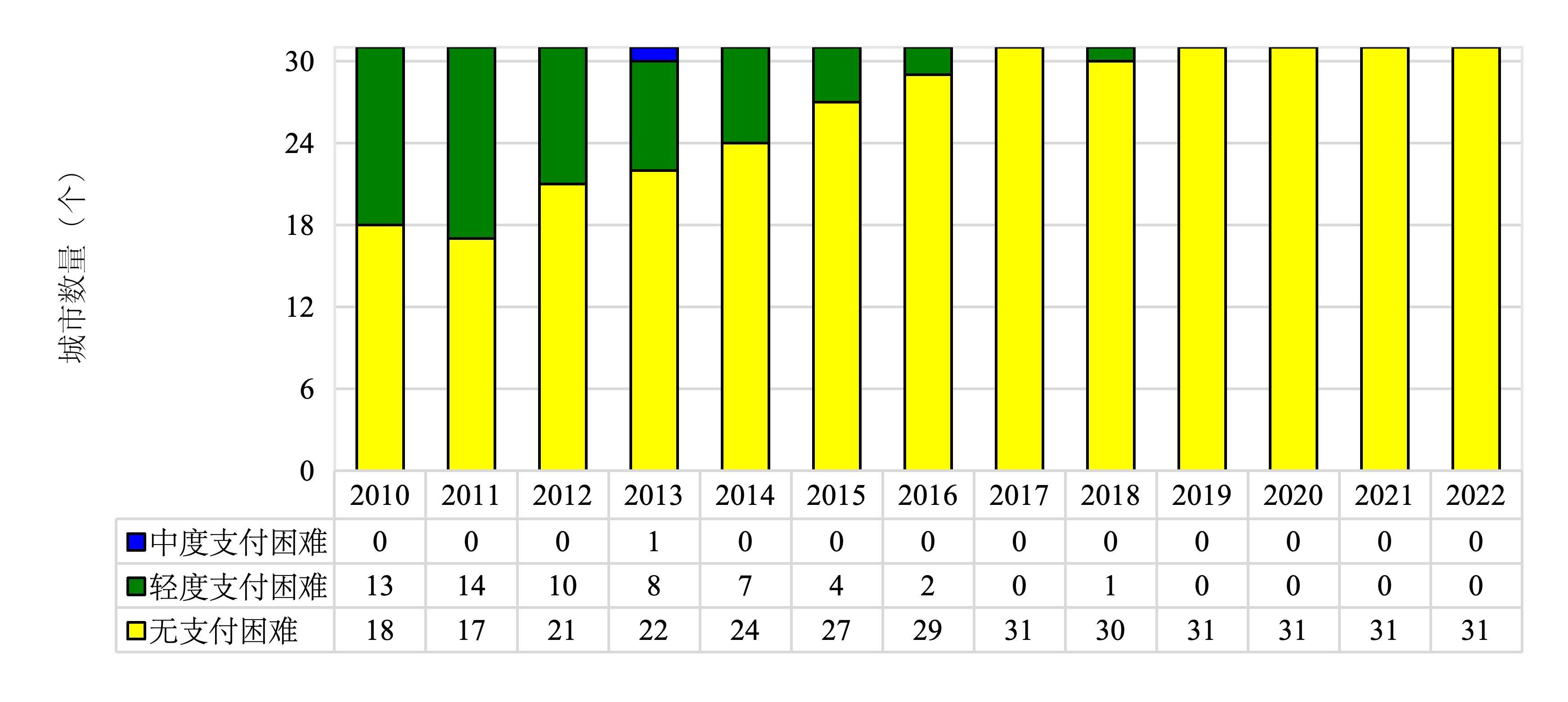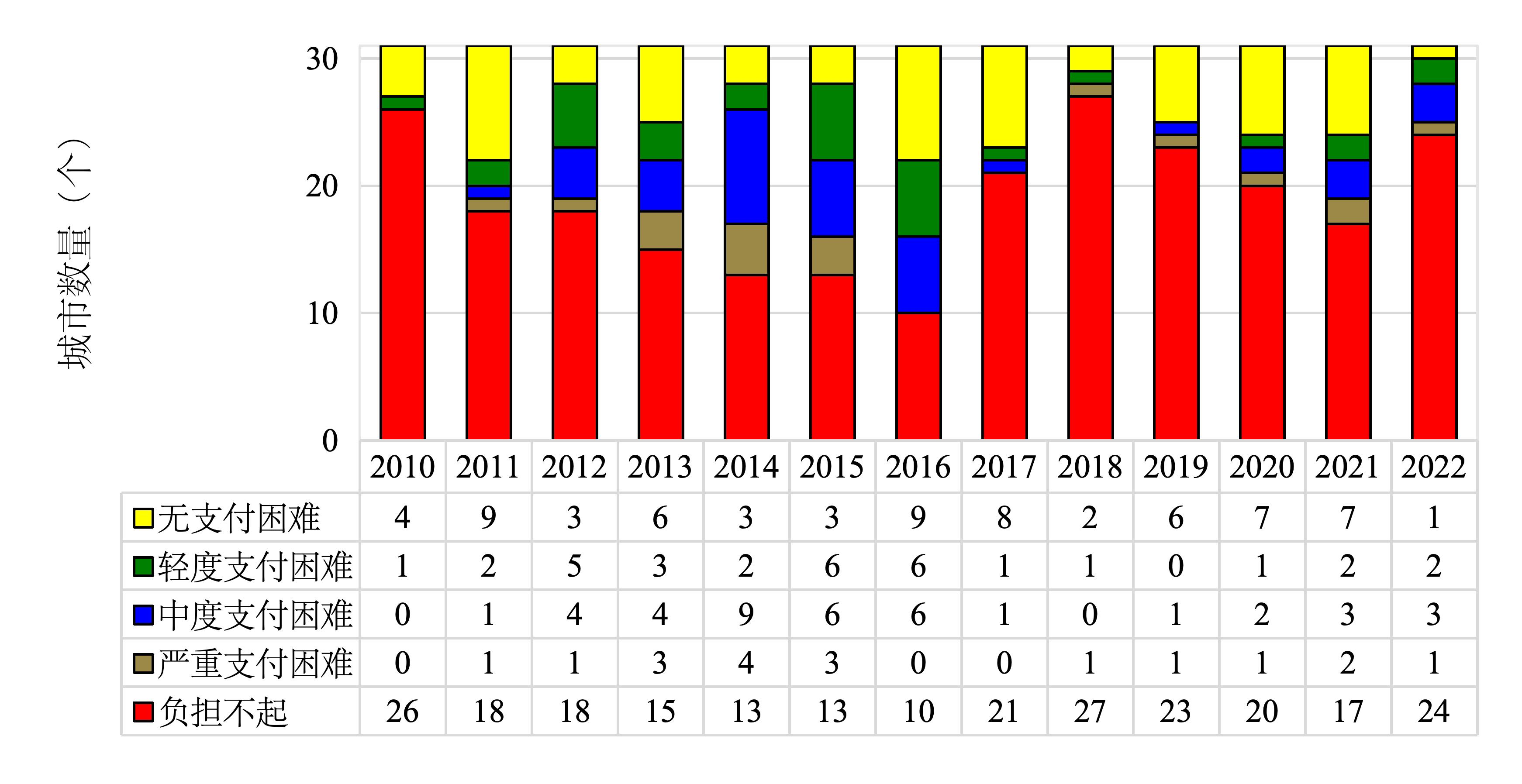 图4 2010-2022年31个二线城市房租可支付性分布