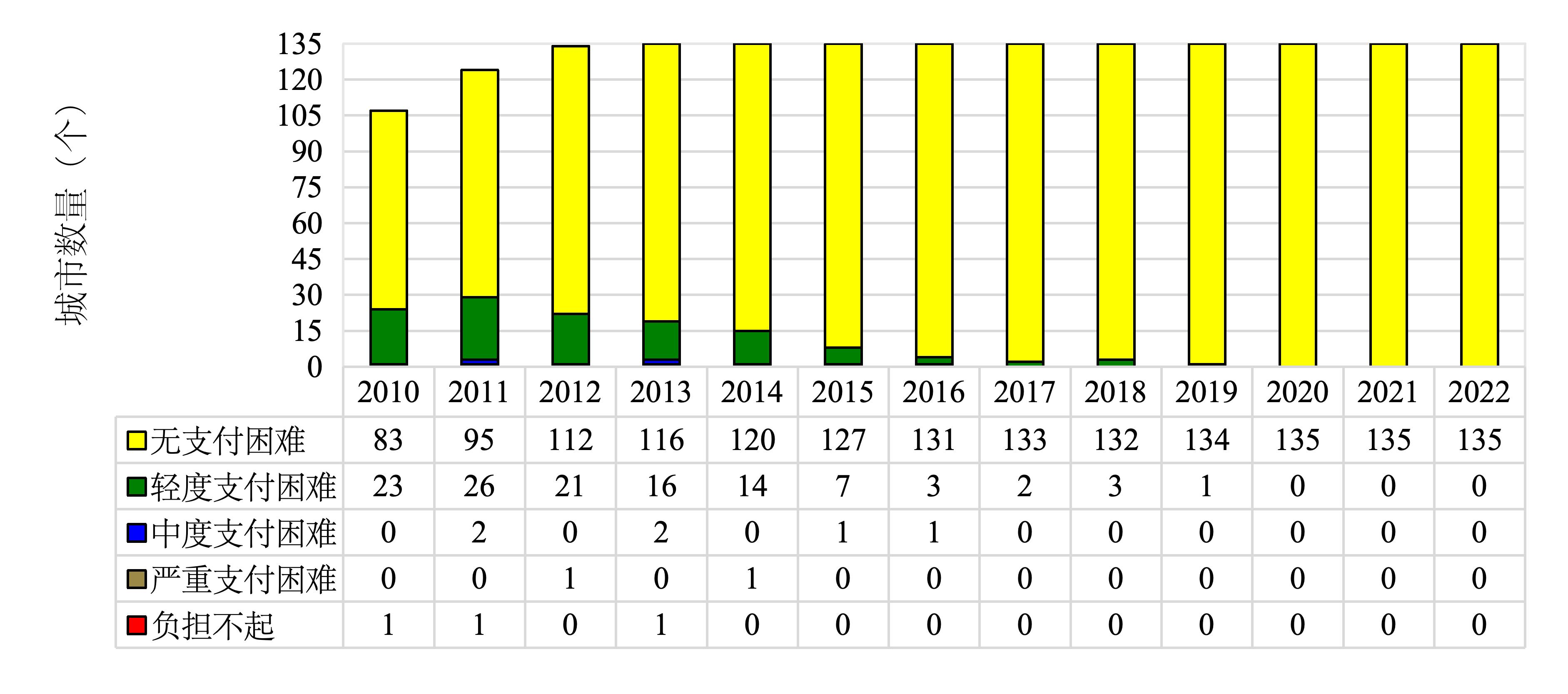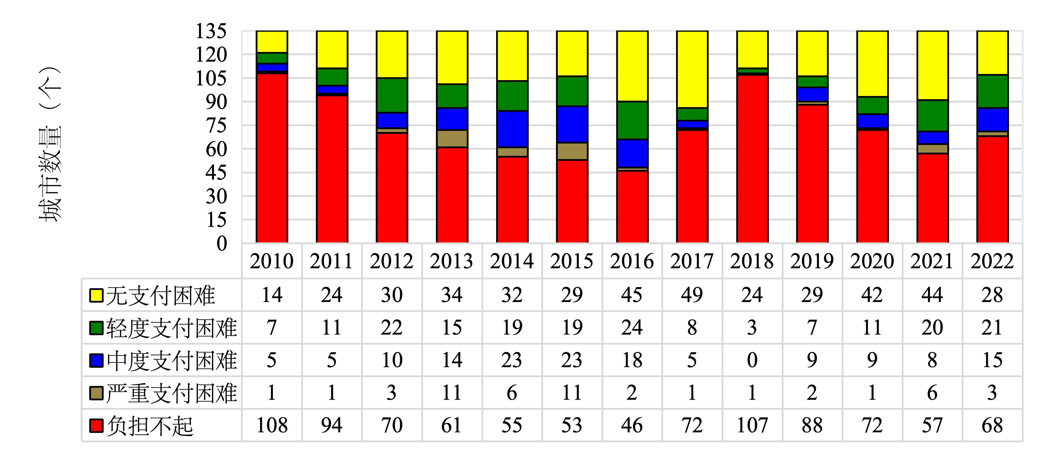图2 2010-2022年中国135个城市房租可支付指数总体分布