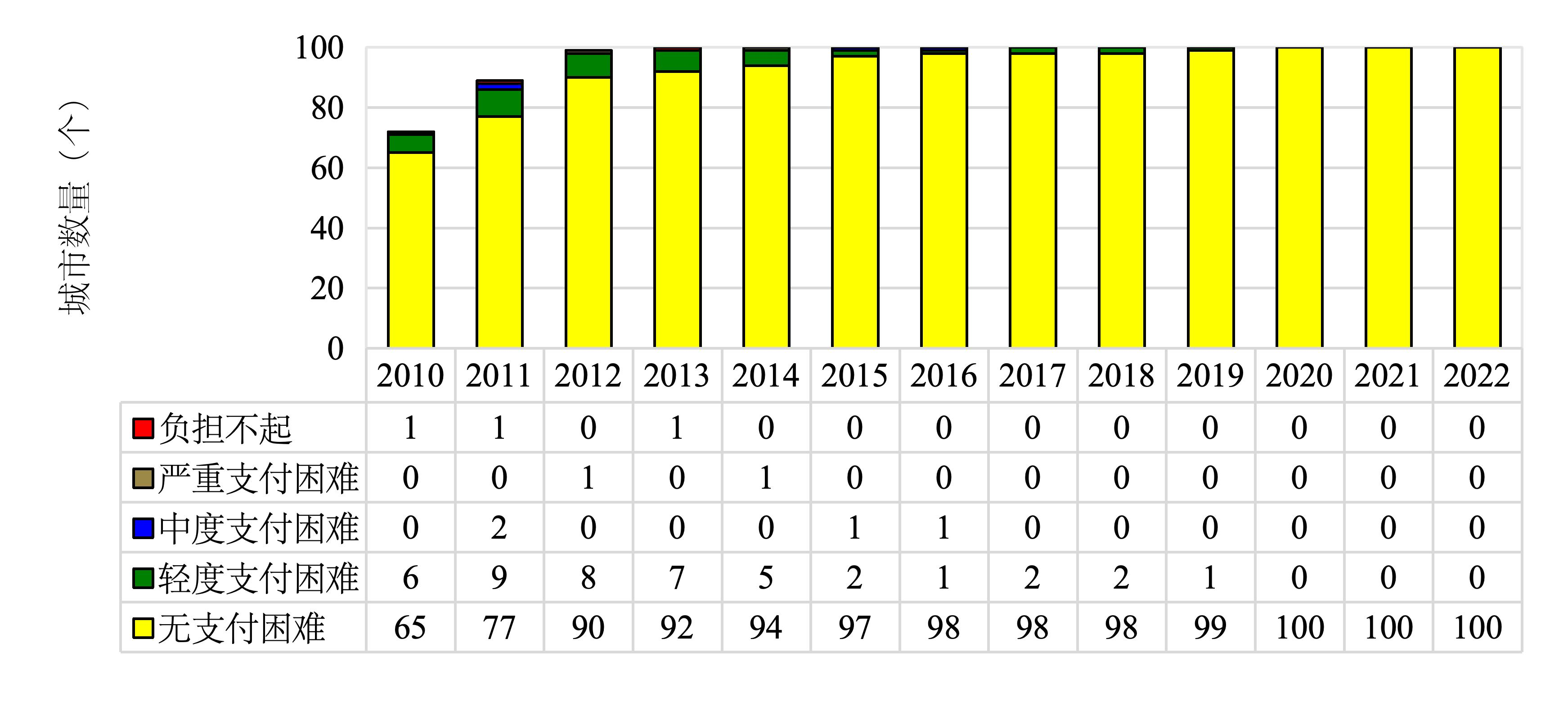 图5 2010-2022年100个三线城市房租可支付性分布