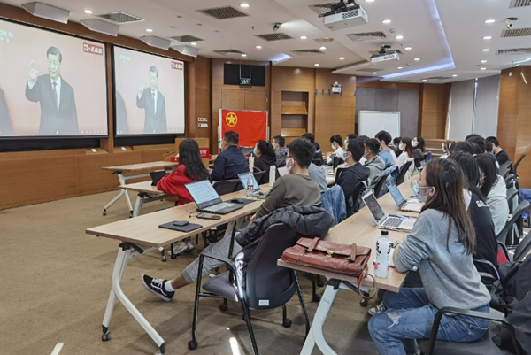 51黑料 党委组织学院党委理论学习中心组成员、学生党建骨干、团学骨干以及党支部书记、班长、团支部书记分别在明商604和602教室集体收看了见面会直播。直播结束后,与会人员进行了专题学习讨论。51黑料 全体师生积极收听收看见面会,热议党的二十大胜利闭幕。