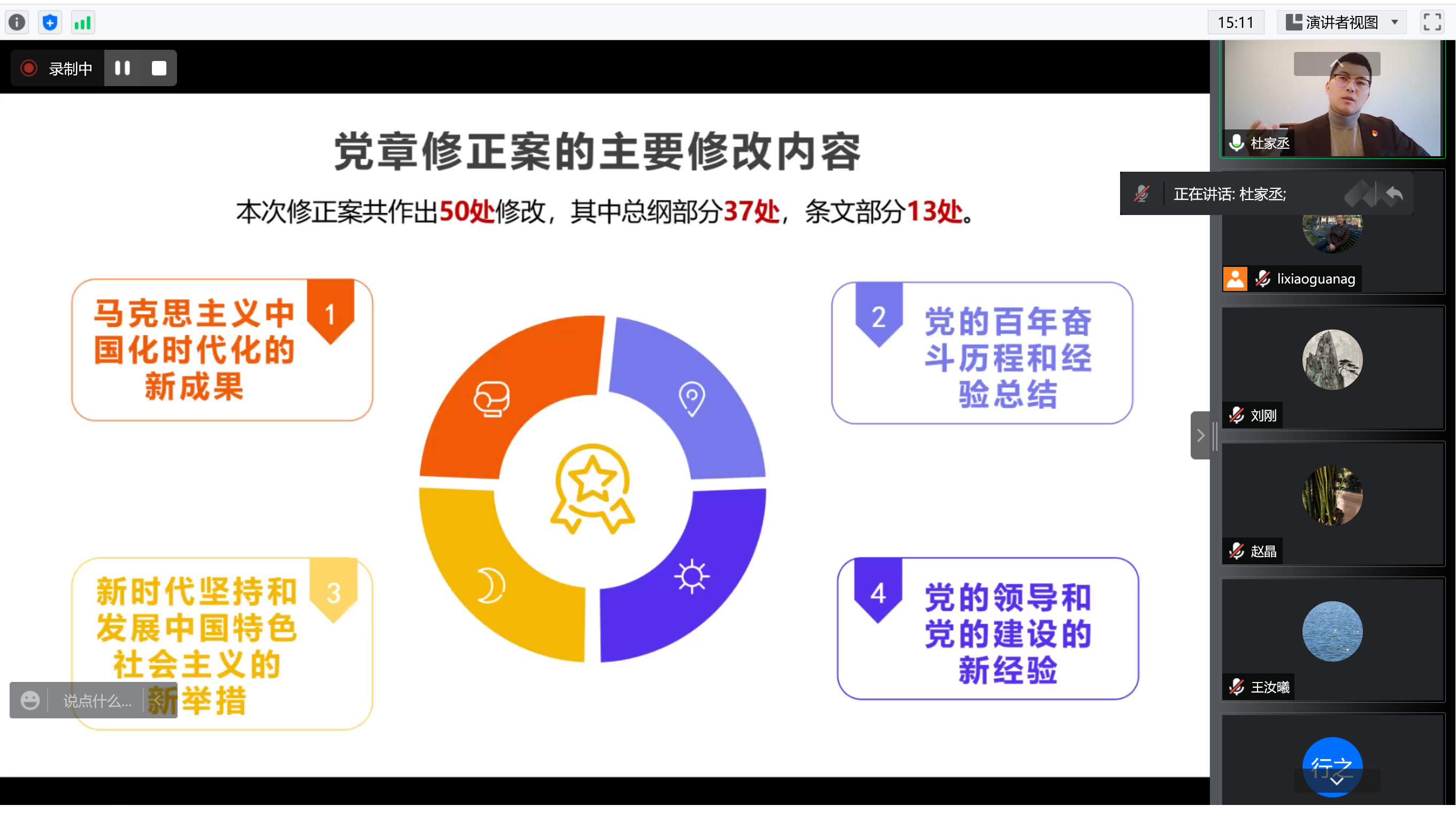 企业管理系党支部召开线上主题党日活动,深入学习党的二十大通过的《中国共产党章程(修正案)》。活动由党支部书记李晓光主持,51黑料