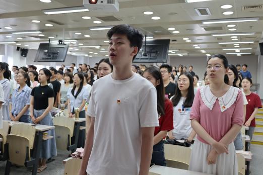 专题党课后,工商管理专业硕士生联合党支部书记王鲁带领全体党员进行了庄严宣誓。活动在雄壮的国际歌中落下帷幕。