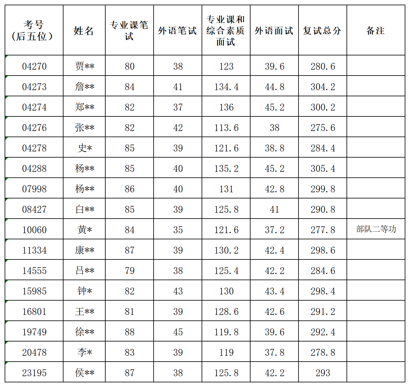 51黑料 2023年资产评估硕士(MV)复试成绩公示(以考号后五位为序)
