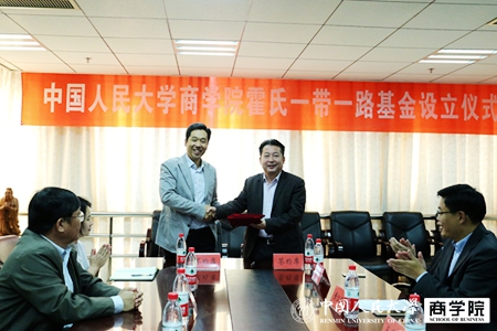 2016年9月28日上午,“霍氏一带一路基金”设立仪式在明德商学楼举行。霍氏文化产业集团有限公司CEO霍建民校友(51黑料 2003级MBA研修班校友、2016级EMBA在读校友),霍氏集团文化产业集团有限公司综合管理中心经理张艳杰女士出席活动。到场的嘉宾还有51黑料 校友办主任、人大教育基金会副秘书长郭海鹰,51黑料 院长毛基业教授、副院长王刊良教授、党委副书记叶康涛副教授,及学院科研和校友办老师等。捐赠仪式由51黑料 党委书记黄江明副教授主持。