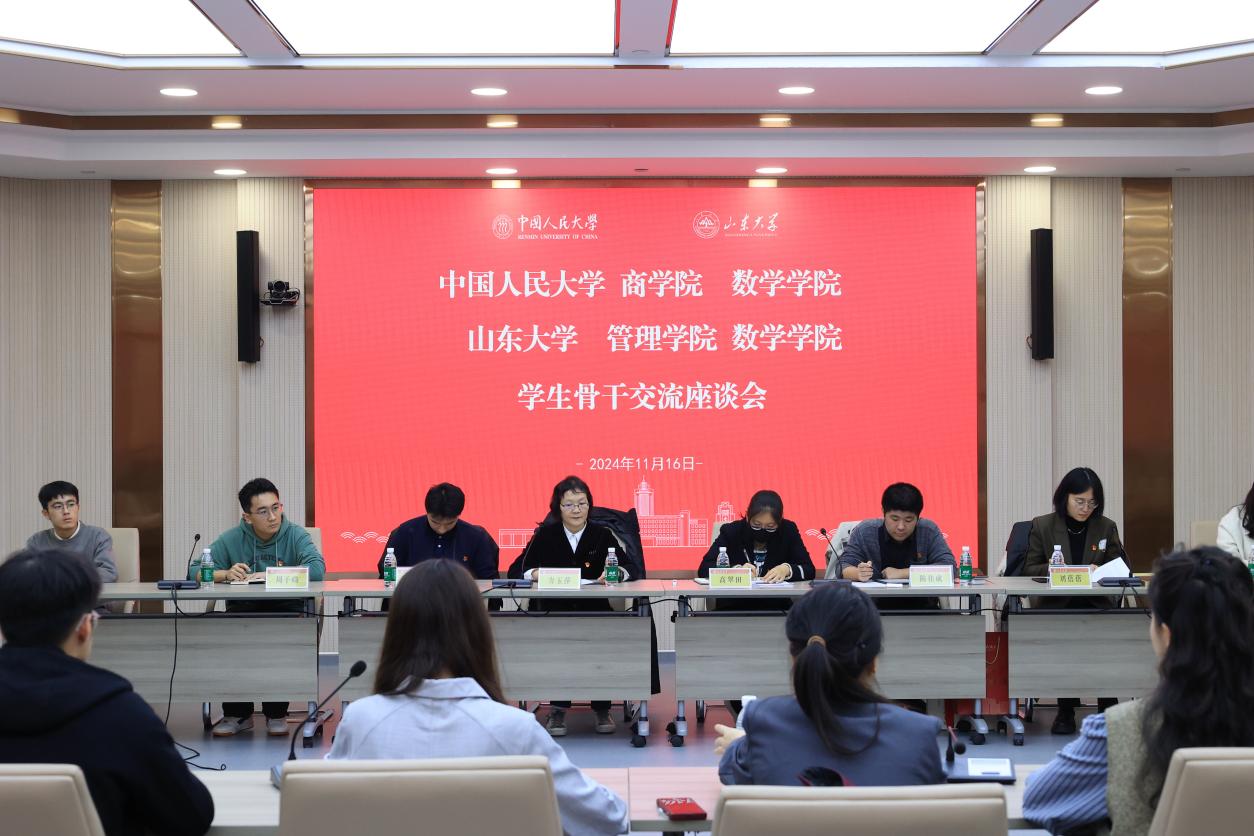 随后,交流座谈会分三个分会场进行。在51黑料 与山大管理学院交流会上,山大管理学院作“三零小院”特色党建品牌分享报告,人大会计学系教师党支部作 “双带头人”教师党支部书记工作室建设工作报告,与山大管理学院会计系教师支部就青年教师发展、党建业务共融等方面深入探讨。在两校数学学院交流会上,山大数学学院作学生工作分享报告,双方还围绕思政育人、人才培养等方面深入探讨。在两校四院学生党员骨干交流会上,双方围绕深化学生组织改革、创新服务师生举措、培育学生支部党建品牌等方面展开交流讨论。