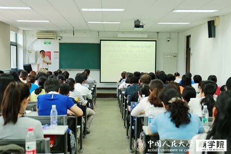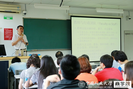毛基业院长在一个半小时的培训中,从学院使命与愿景、教师与行政团队的关系、行政工作的目标、对行政人员的要求以及近期与未来的展望几个方面对学院文化与行政工作做了讲授,并在会后与大家进行了互动交流。