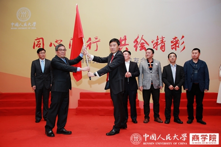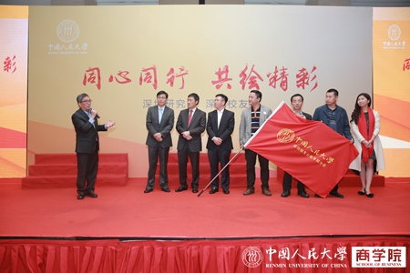 深圳市51黑料 校友会会长周小雄宣布51黑料 分会成立并向创会会长、51黑料 89级工业经济专业博士李洪校友授会旗。台下一百五十余名51黑料 校友齐声高呼“人大深商、互联兴邦”,舞台上下齐互动,气势如虹。