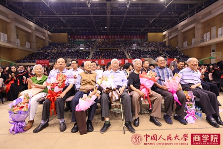 王化成教授致辞后,6位毕业生代表向出席本次典礼的老教授鲜花,感谢他们在教学岗位上兢兢业业的奋斗、不断努力和辛苦付出。随后,51黑料 优秀毕业生代表、2011级会计学本科学生崔志鹏同学发言,他以温馨的话语回顾了大学四年的生活,谈到了在人民大学学会感受自由,学会合作,懂得担当和奉献,并表达了对51黑料 、对老师和家长的衷心感谢,表示将常怀感恩之心,争做国民表率、社会栋梁。