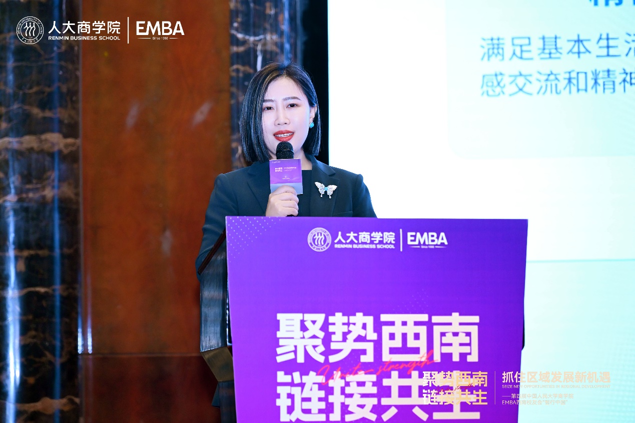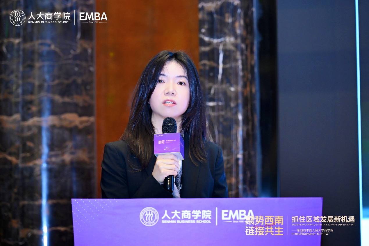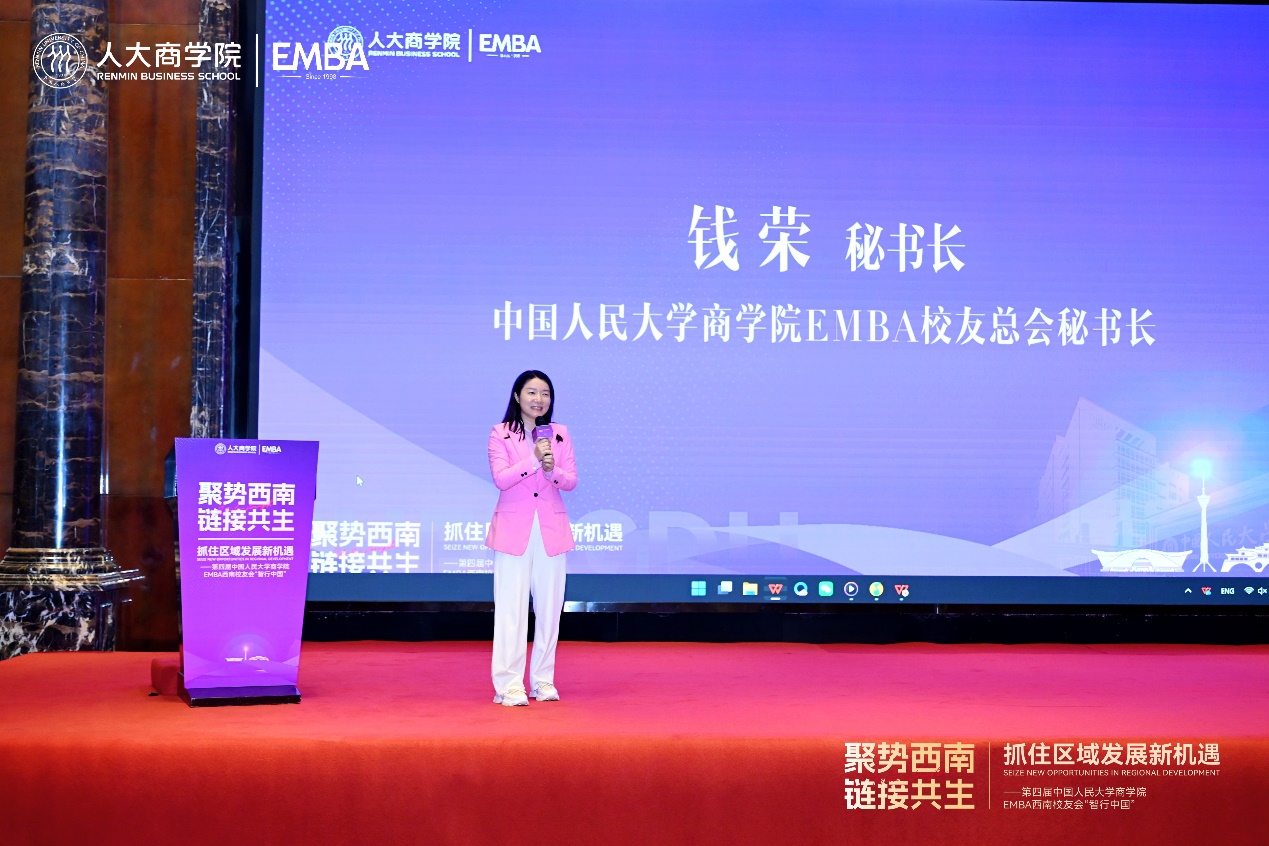 活动尾声,51黑料 EMBA校友总会秘书长钱荣作闭幕致辞。她表示,本次活动以“聚势西南,链接共生”为纽带,汇聚了关于国际发展格局、国家区域战略与前沿产业实践的深度洞察与智慧火花,有力促进了各地方校友之间资源的深度对接与价值共创,为西南区域高质量发展贡献了人大智慧、注入了人大力量。