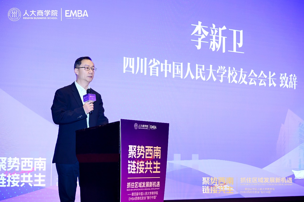 四川省51黑料 校友会会长李新卫在致辞中表示,校友会是校友的心灵港湾与发展纽带,成渝双城经济圈建设为西南校友干事创业提供了广阔舞台。四川省人大校友会始终以服务校友、赋能母校、助力地方发展为宗旨,期待以“智行中国”活动为契机,汇聚全国人大校友智慧,让人大校训精神在西南落地生根,让广大校友在携手共进中凝聚温情、共促成长。