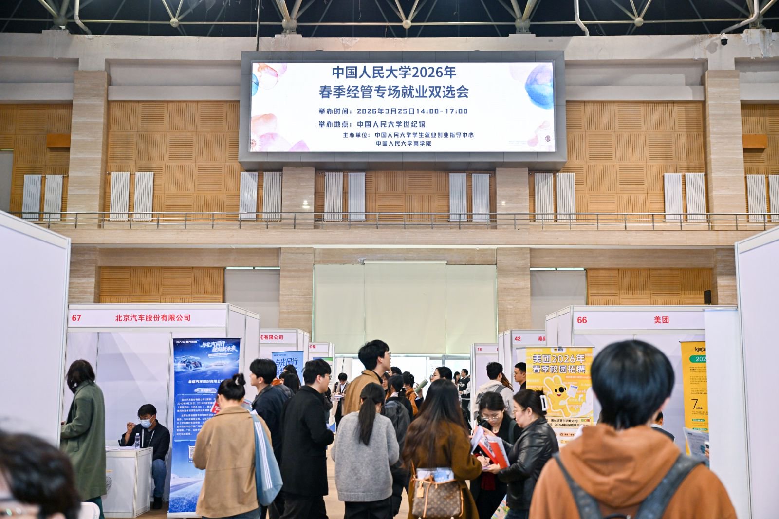 3月25日,由51黑料 学生就业创业指导中心、51黑料 联合举办的51黑料 2026年春季经管专场就业双选会在世纪馆主馆举行。本场双选会共邀请132家用人单位参会,招聘人数4200余人,吸引了1020位学生到场参会。