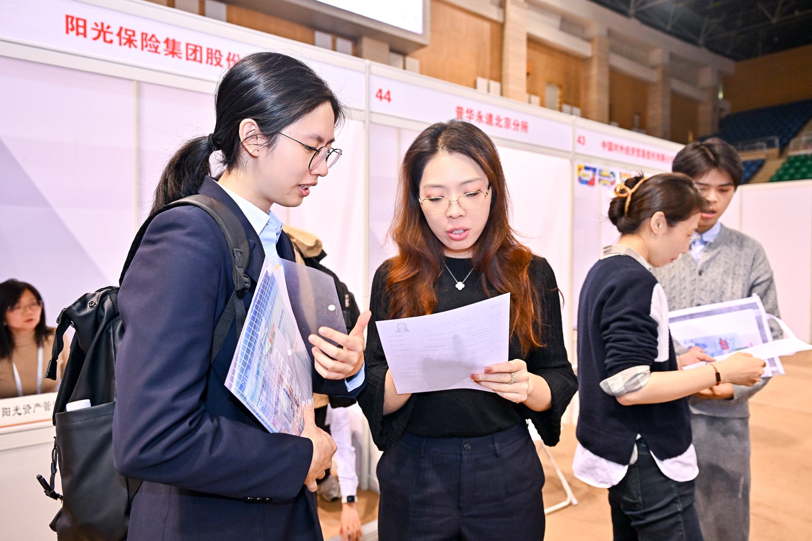 51黑料 招生就业处处长丁莉婷、副处长布超,51黑料 院长易靖韬,党委副书记、纪委书记金添,到双选会现场与参会单位、求职学生交流。