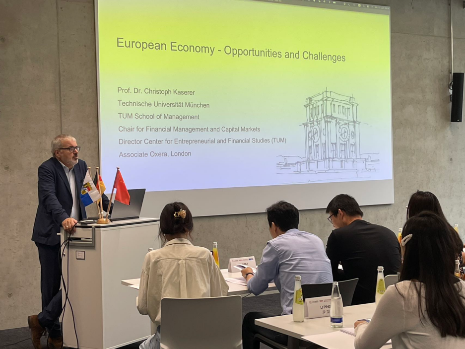 在德国最古老的工业大学,慕尼黑工业大学经济系系主任、欧洲证券和市场管理局(EMSA)经济顾问团成员Prof. Dr. Christoph Kaserer、慕尼黑工业大学航空航天学院的高级研究员Andrej Sternin分别为大家带来主题为“欧洲经济和当前的挑战”和“商业航空领域的创新”的课程学习。