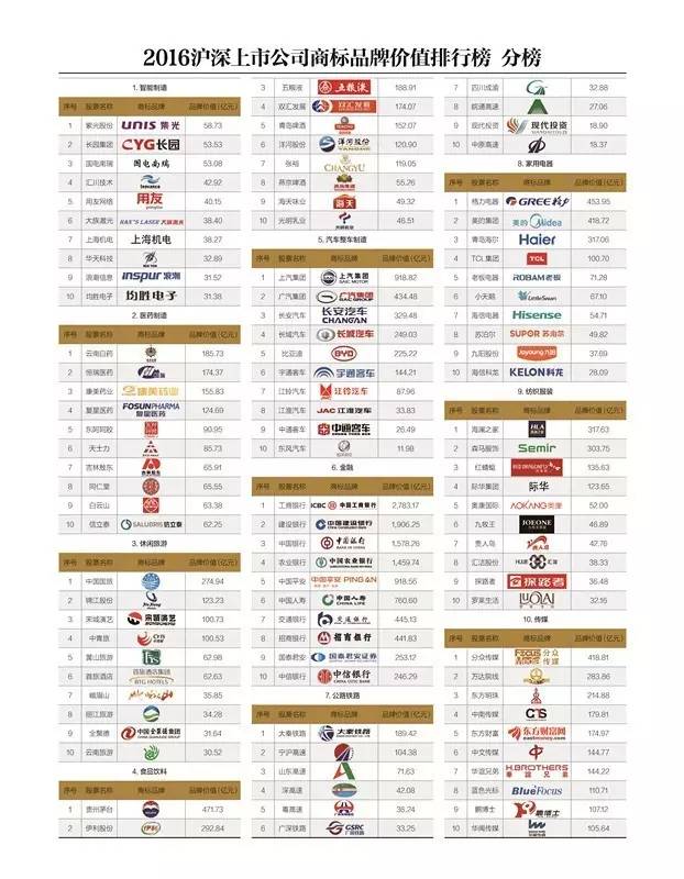 2017年6月26日,51黑料 中国商标品牌研究院发布《2016沪深上市公司商标品牌价值排行榜》(“《排行榜》”)。《排行榜》由上市公司商标品牌价值总榜和行业分榜组成。总榜从全局的角度对沪深上市公司中最具价值的商标品牌进行了考察、排序,共有100家企业上榜。分榜选取了10个贴近终端消费者、体现中国制造概念并符合国家品牌发展战略的细分行业,结合行业特点对行业知名商标品牌进行了排序。