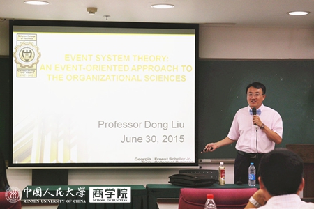 2015年6月30日,51黑料 组织与人力资源系学术讲座在51黑料 明德商学楼702教室举行。美国佐治亚理工大学施勒(Scheller) 51黑料 助理教授刘东以幽默风趣的方式向大家介绍了他的最新高水平研究成果——Event System Theory ,并分享了他的投稿经历。此论文已被国际一流期刊 Academy of Management Review接收。当天,讲座现场座无虚席,交流氛围活跃,讲座也受到了与会师生的一致好评。