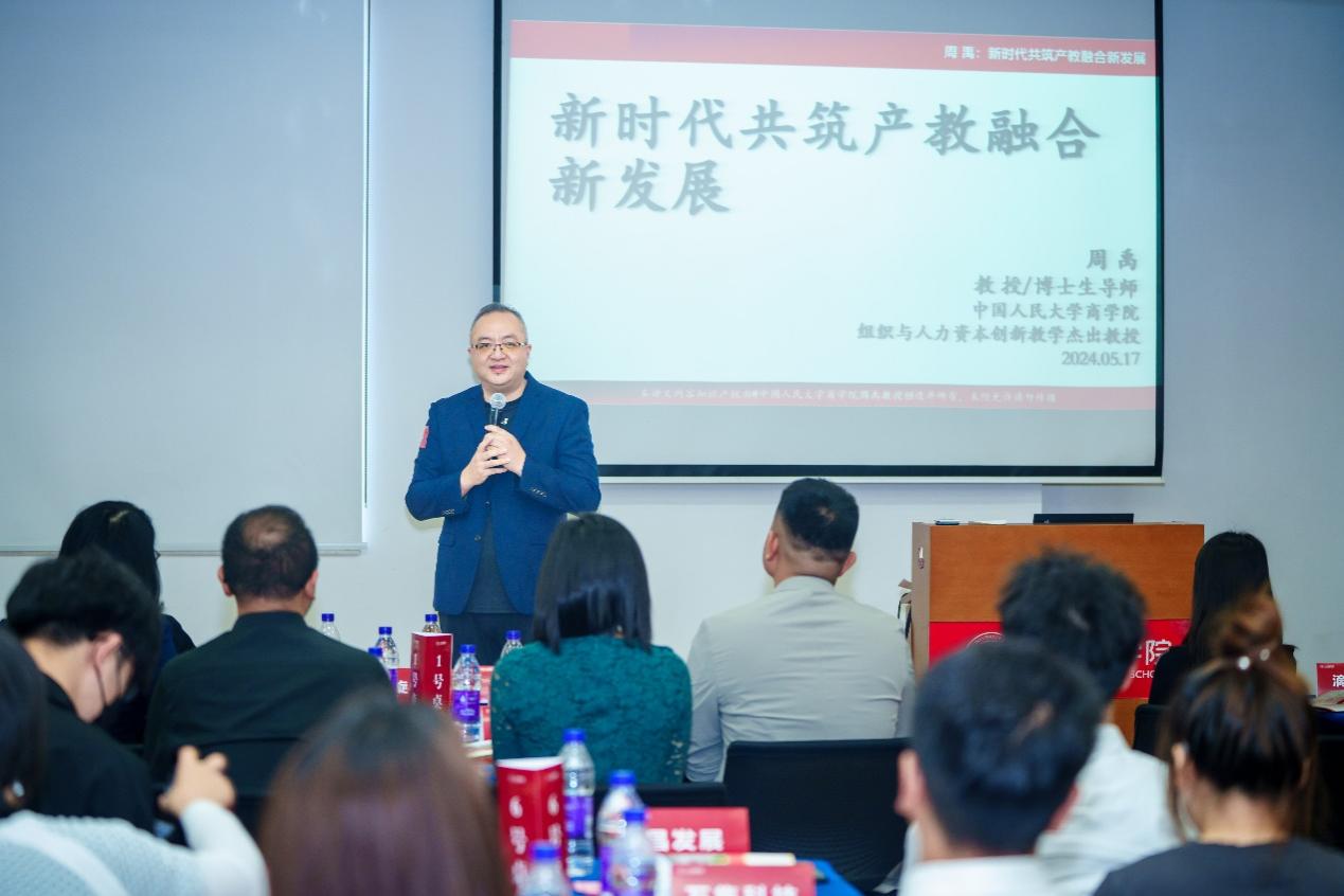 周禹作“新时代共筑产教融合新发展”主题报告。他阐释了人才在高质量发展中的重要作用,并提出“共融共建共享高质量的产教融合生态,全方位、全链接、全周期助力企业高质量的业人融合、组织能效与业务竞争力持续升级”。