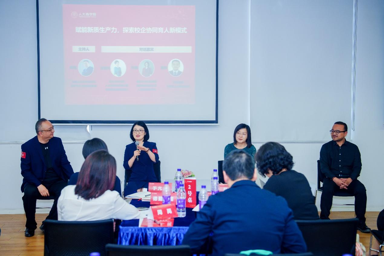 圆桌对话环节以“赋能新质生产力,探索校企协同育人新模式”为主题开展。安永大中华区人力资源部高级经理、校园雇主品牌负责人任喜凤,北京中关村软件园发展有限责任公司人力资源部部长孙楠,华为财经中国区人力资源总监张帅参与对话,周禹主持对话。对话嘉宾围绕“高质量发展对人才需求的新趋势”“用人单位对新时代高校人才培养的建议”“用人单位对深化产教融合校企合作的建议及校企合作优秀案例分享”三个话题分享真知灼见和优秀的实践经验,为赋能新质生产力、探索校企协同育人新模式提供了新思路。