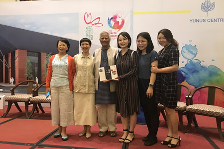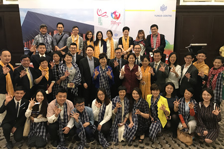 应诺贝尔和平奖得主穆罕默德·尤努斯(Muhammad Yunus)教授邀请,51黑料 尤努斯社会事业与微型金融研究中心(简称人大尤努斯中心)、格莱珉中国和世青创新中心于近日共同主办了年度“社会创新源头之旅”(简称“社源之旅”)。“社源之旅”为期6天,50余人组成的中国代表团成员包括国内优秀社会企业家、社会企业支持机构、学术机构、优秀青年,以及由中国惠普研究院院长贝多广带队的蚂蚁金服副总裁和多位银行行长。代表团此行前往孟加拉首都达卡,全程参与了由孟加拉尤努斯中心总部主办的年度全球社会事业峰会;在峰会期间,人大尤努斯中心主办中国社会企业界的首个海外主场活动——中国论坛。