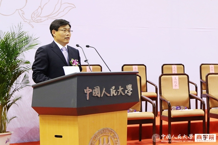 首先,1987届工业经济专业硕士、全国人大常委会预算工委副主任朱明春代表校友发言。他对2017届毕业生表示衷心祝贺,并结合自己的人生阅历对毕业生提出几点建议:坚定目标、提高情商、学会做人、主攻商场、仰望星空。他呼吁所有毕业生要肩负人大学子的使命,与时代和国家共同成长。