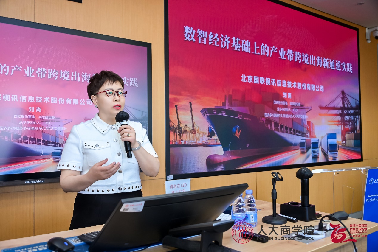 刘斋作“数智经济基础上的产业带跨境出海新通道实践”的主题报告。她从国联股份产业互联网战略、产业带跨境出海、产业数字化生态与跨海出境创新实践四个方面进行报告,通过具体的实践展示了在技术变革背景下的产业变革路径,刻画了科技创新助力全球产业链重构与创新突围的成功经验与案例。
