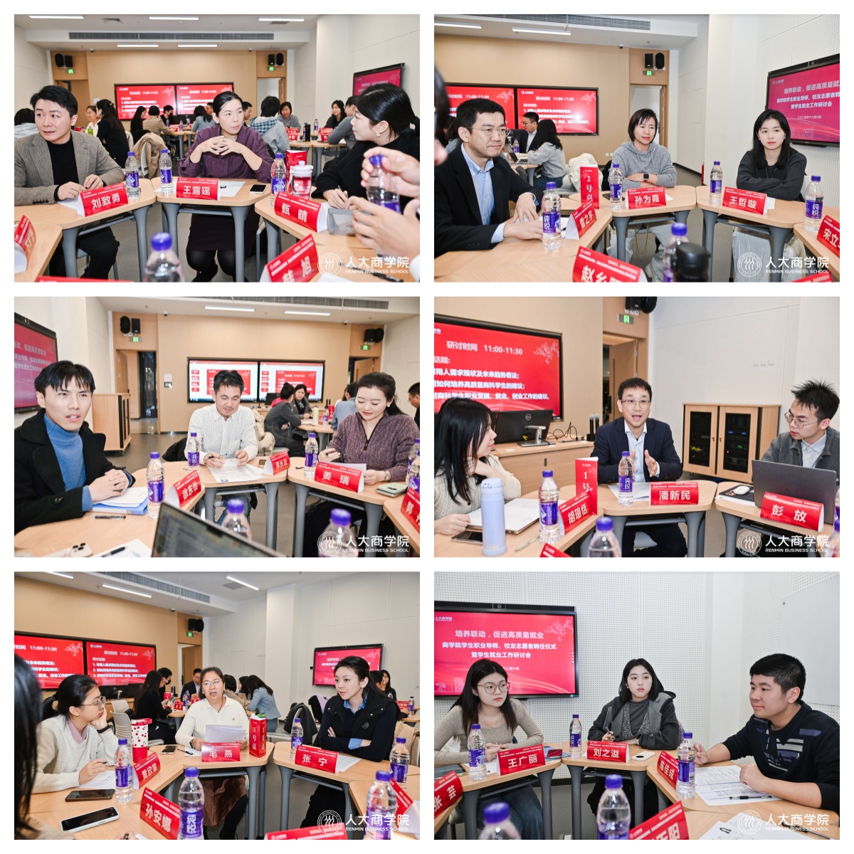 聘任仪式结束后,进入“学生就业工作研讨会”环节。与会嘉宾以小组形式与同学们围绕“用人需求现状及未来趋势、如何培养高质量商科人才、对商科学生职业发展、就业、创业工作的建议”等议题展开交流。同时,学生职业导师、青年校友志愿者针对同学们的具体问题进行解答,并对同学们携带的简历进行面诊,同学们纷纷表示获益匪浅。