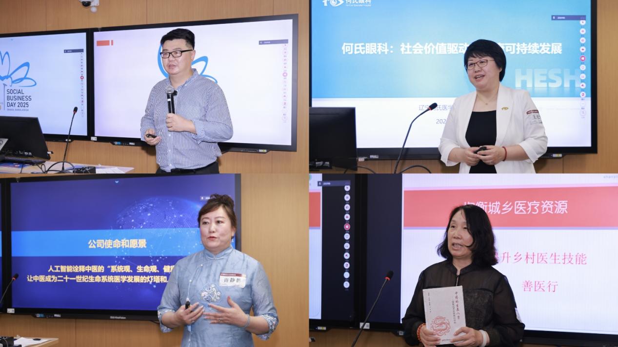 辽宁何氏医学院副校长王天华作“何氏眼科:社会价值驱动眼健康可持续发展”主题报告,介绍了何氏眼科集团在“天下无盲”的愿景引领下,融合社会责任、科技创新和商业逻辑,推动可持续发展的发展历程和宝贵经验。