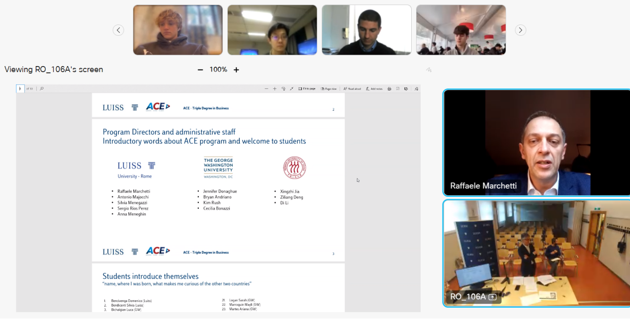 4月20日,中意美三学位管理学本科项目三校师生首次见面会线上举行。意大利路易斯大学副校长拉斐尔·马尔凯蒂(Raffaele Marchetti),工商管理本科项目主任安东尼奥·马乔奇(Antonio Majocchi),美国乔治·华盛顿大学教务长助理詹妮弗·唐纳胡(Jennifer Donaghue),51黑料 院长助理布莱恩·安德里亚诺(Bryan Andriano),51黑料 副院长邓子梁,三学位项目主任贾行之,三校项目相关负责老师,以及2022级首批41名学生出席了线上会议。会议由意大利路易斯大学安东尼奥·马乔奇主持。
