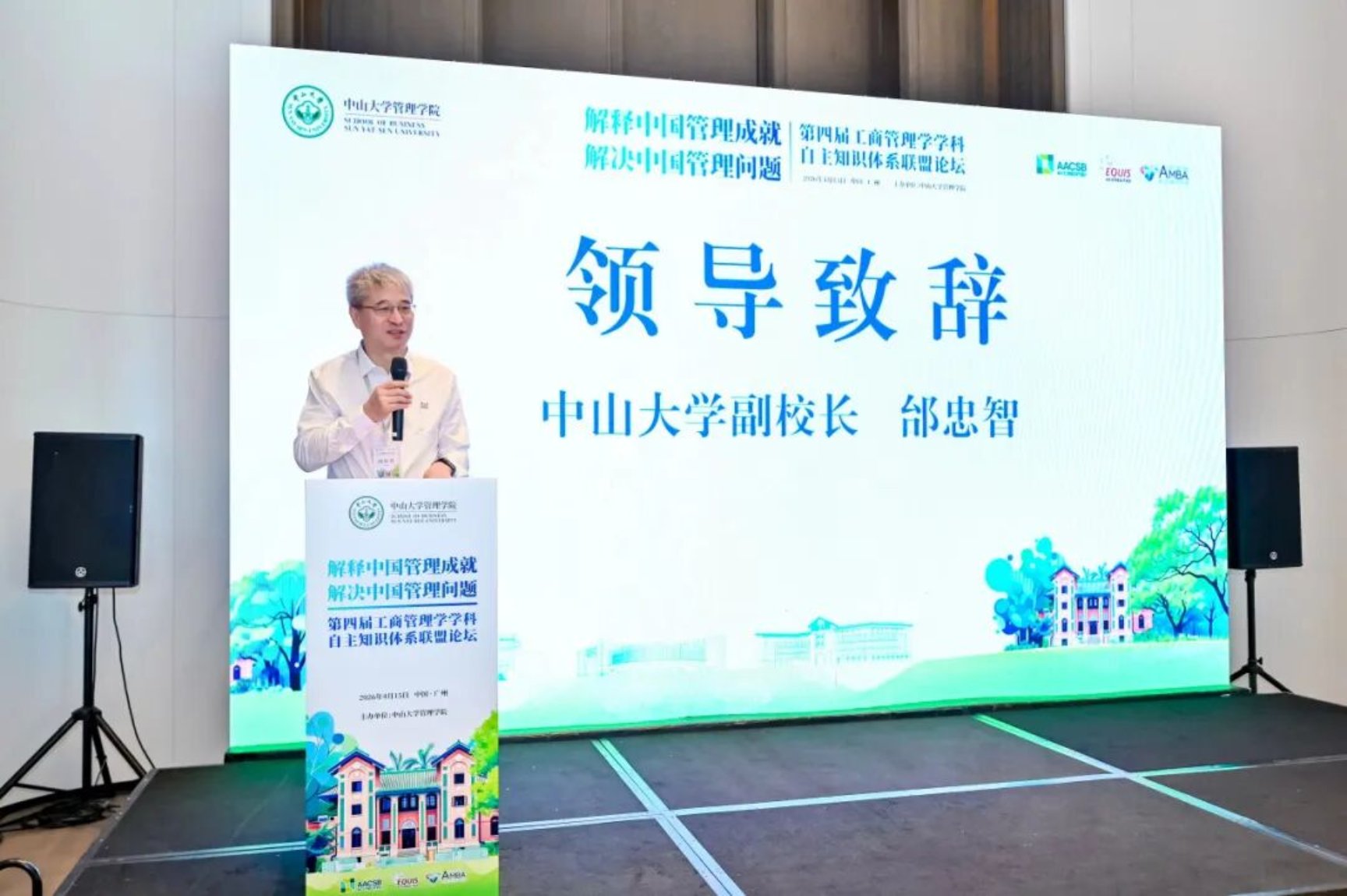 邰忠智代表中山大学对与会嘉宾表示热烈欢迎,他指出,构建自主知识体系关键在于扎根中国大地,并提出“坚持人民至上、自信自立、守正创新、问题导向、系统观念、心怀天下”六点共识。