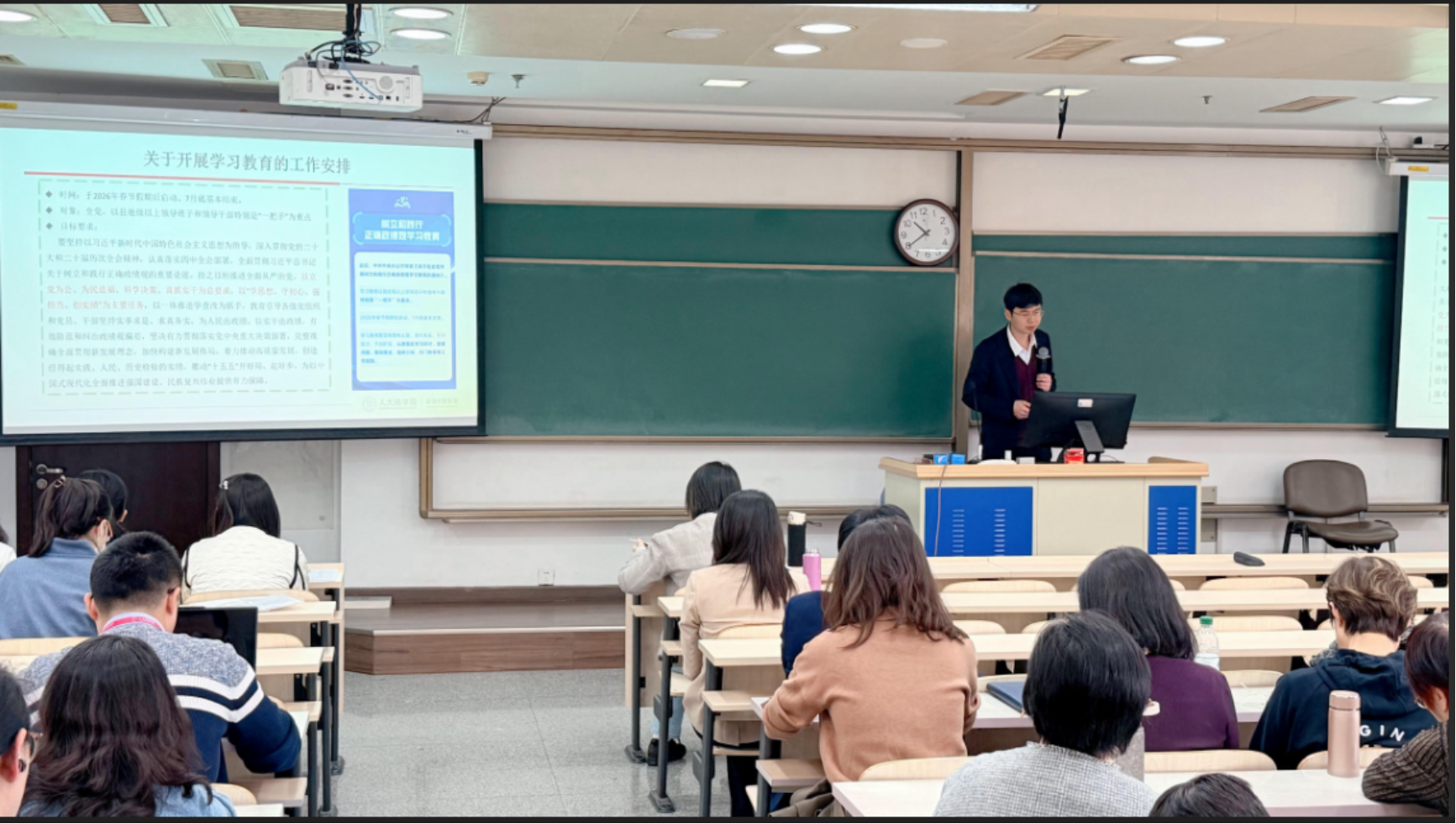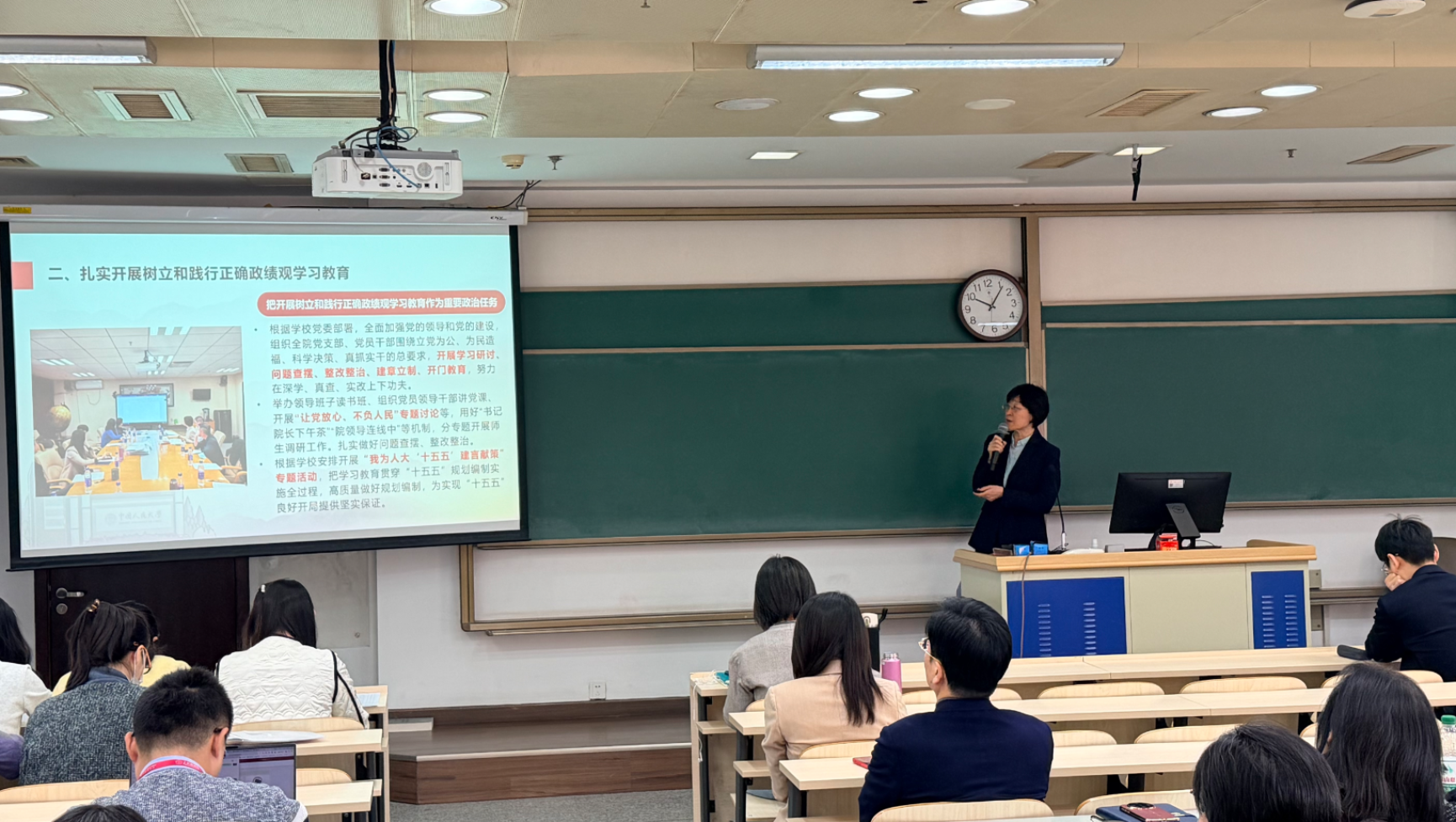 院长、党委副书记易靖韬传达了党中央关于开展树立和践行正确政绩观学习教育的相关要求、学校关于学习教育的实施方案、工作安排、任务清单以及学院的工作计划。他强调,要深刻理解在“十五五”开局起步的关键节点,党中央决定在全党开展树立和践行正确政绩观学习教育的重大意义,深刻把握“政绩为谁而树、树什么样的政绩、靠什么树政绩”等根本问题,以正确政绩观引领学院事业高质量发展,脚踏实地,真抓实干,创造出经得起实践、人民、历史检验的实绩。