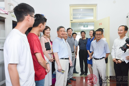 下午四时许,副校长洪大用、刘元春一行来到品园2楼212宿舍,看望商院入住新生。洪大用副校长与同学们亲切交流,向同学们赠送居住在该宿舍的上一届师兄的寄语明信片,并叮嘱同学们尽快适应大学生活。最后,同学们感谢学校的关心和照顾,并向老师们献花表达教师节祝福。