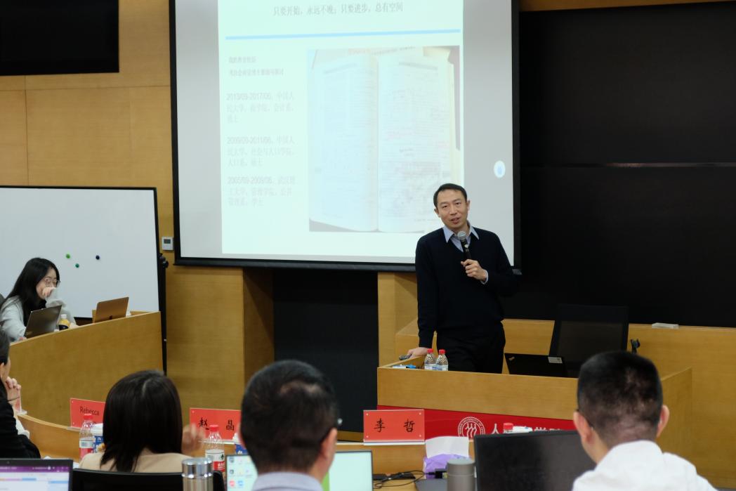 李哲作《博士生学术研究中的挑战与应对策略》主题分享。他回顾了在51黑料 的求学经历以及读博对他职业生涯的影响。他表示,读博之路并不是一帆风顺,撰写英文论文的艰难、投稿期刊时的不安忐忑都让他记忆深刻。要抱着“学术战斗”的学习态度,不断坚持与积累,虽然过程很辛苦,但只要愿意学习和进步,就一定有发展的空间。他向博士生推荐了三本书籍并指出,阅读可以重塑思维方式,是自我疗愈和提升的重要途径。他提到,进入中央财经大学工作,特别是到财务处任职后,需要去解决实际的财务问题,需要在学术教学与行政工作中寻找平衡点,经过博士阶段磨练的他已能从容地面对这些困难、迎接挑战。“读博并不能直接解决实际问题,但它确实是一个很好的锻炼能力和提升自我的途径。”