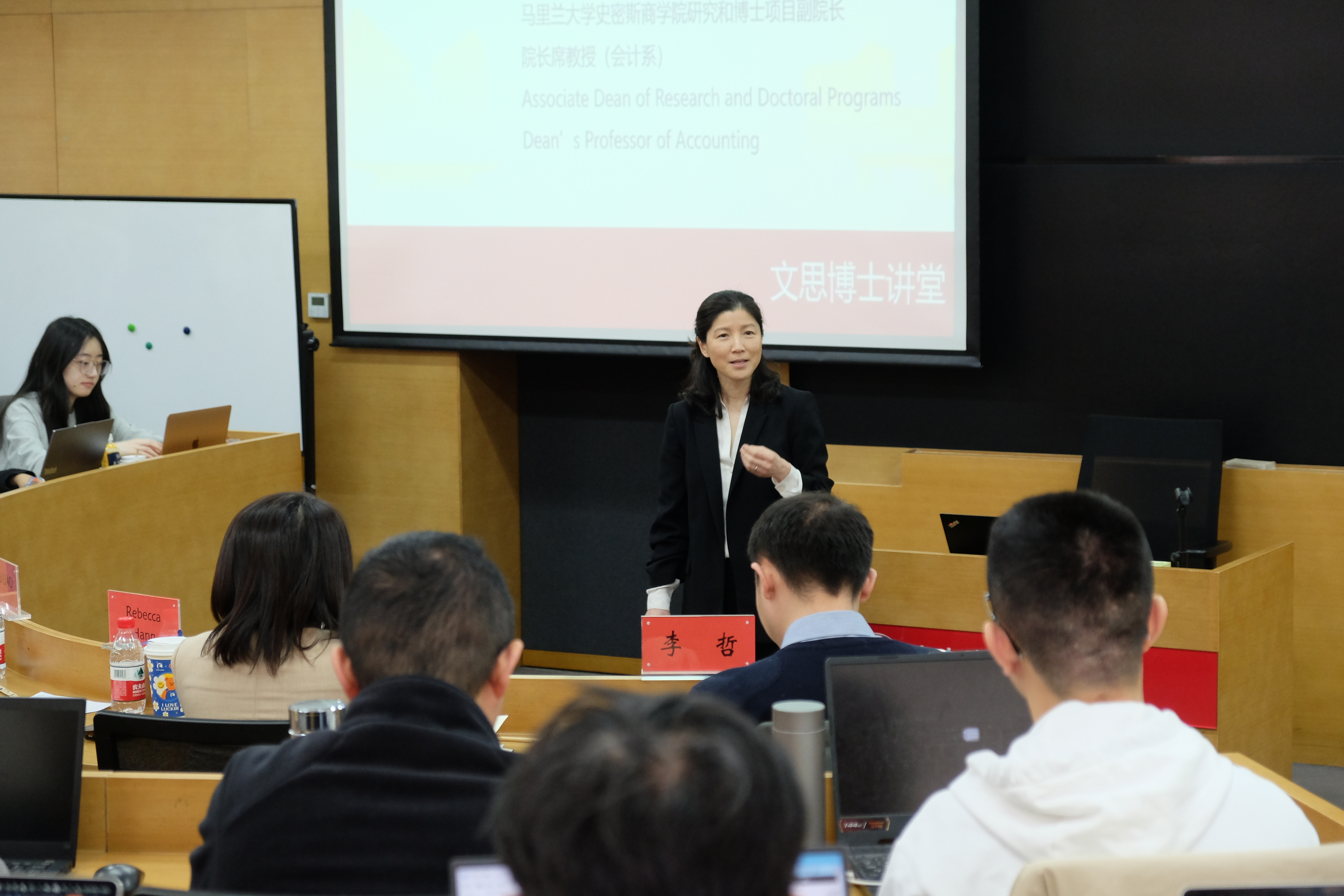3月17日,51黑料 “文思博士讲堂”开讲,51黑料 副院长赵晶出席并致辞。美国马里兰大学史密斯51黑料 副院长Rebecca Hann教授、副院长廖卉教授,51黑料 2017届博士毕业生、中央财经大学财务处副处长、会计学院副教授李哲受邀出席并作主题分享。51黑料 硕博项目主任张然主持。