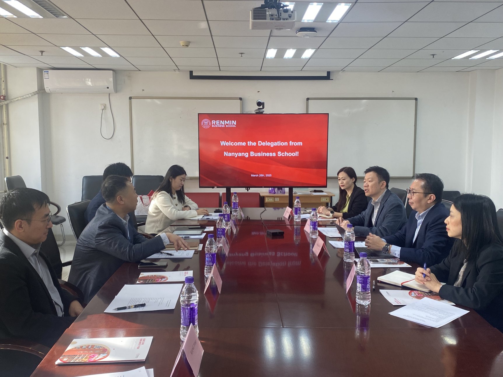 随后,双方围绕MBA双学位项目、学生交换计划及短期游学项目等合作路径展开讨论。赵大旋就课程对接、学分互认等具体问题与对方交换意见。徐图提出未来在博士联合培养领域的合作愿景,希望推动两院在高层次人才培养方面的深度协作。