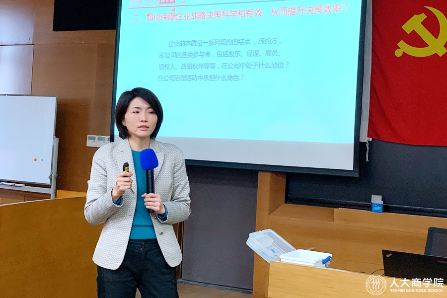 党委书记黄江明主持学习,企业管理系赵晶以“公司治理与国企改革”为题...