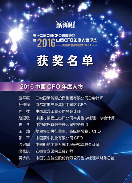 近日,由财政部新理财杂志社主办的“第十二届中国CFO高峰论坛暨2016中国CFO年度人物颁奖典礼”在北京举行。